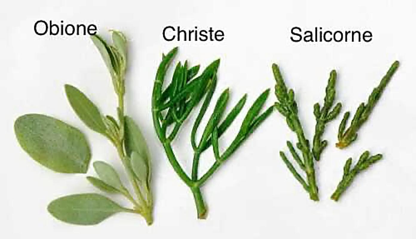 Plantes marines Les plantes marines poussent entre deux mondes : attachées à la terre par leurs racines, elles captent dans leurs feuilles le sel de la mer. Salicorne, criste marine, obione et roquette de mer apportent à l’organisme de précieux apports en iode et sels minéraux. Depuis des siècles, on apprécie leur saveur subtile et leurs propriétés digestives.