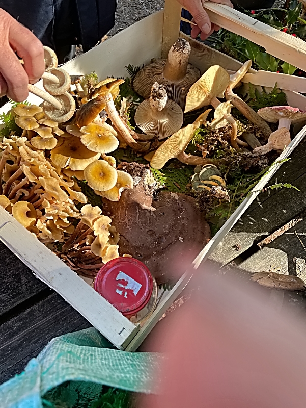 En fin de matinée nous nous sommes tous réunis pour une inspection très instructive et explicative par la présidente Mme Annick Tessier sur les différents champignons récoltés.