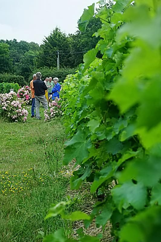 Ensuite nous épointons ( l’écimage) les grands brins pour éviter qu’elles ne retombent et face de l’ombrage au coeur de la vigne et pour éviter trop d’humidité au centre de la vigne qui pourrait amener de la pourriture sur les grappes et qui serait contre productif, nous faisons aussi un effeuillage mais toujours du côté du soleil levant pour éviter une exposition trop forte du côté sud et du côté ouest.