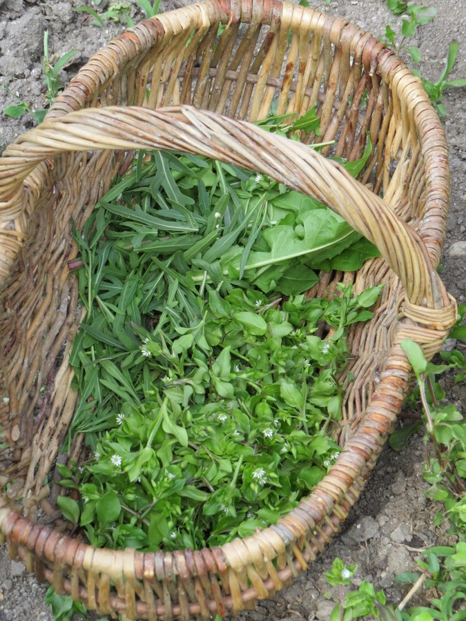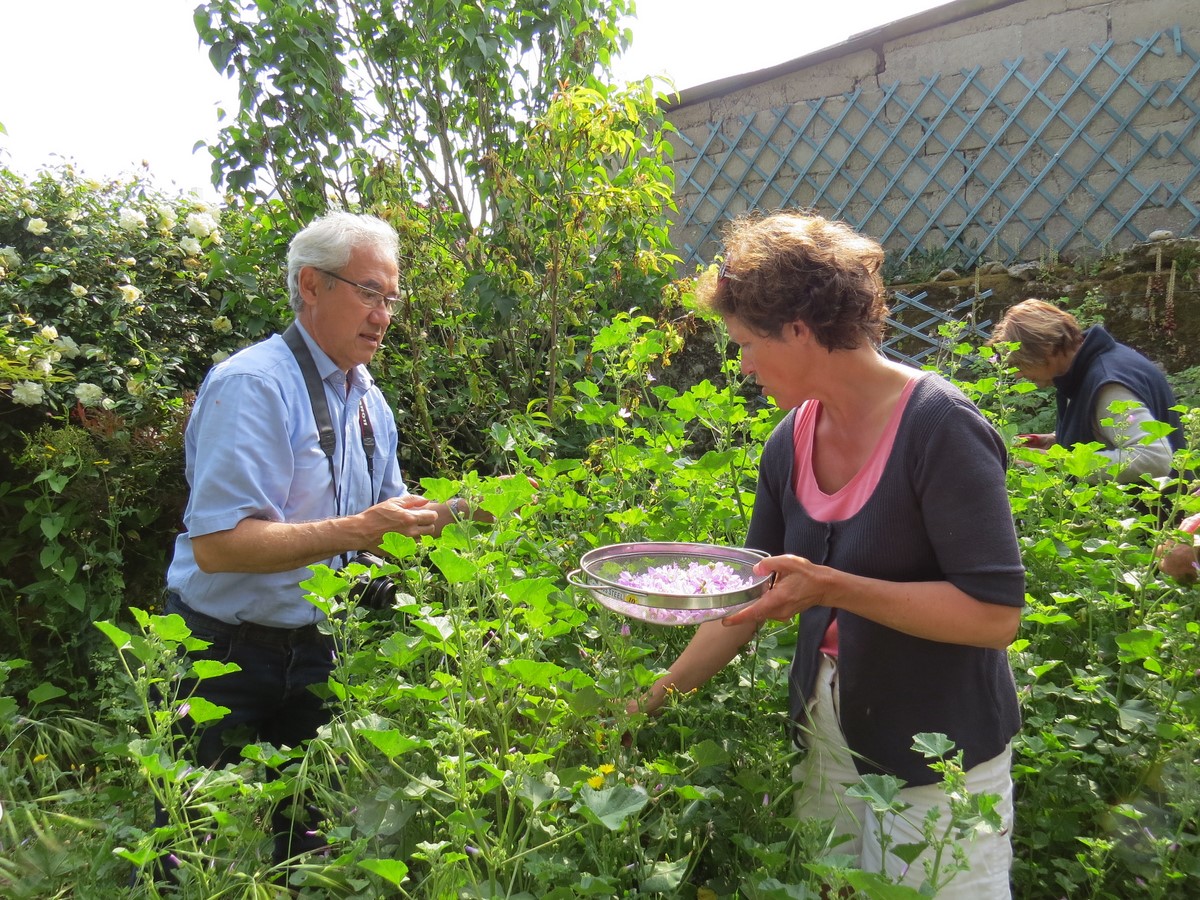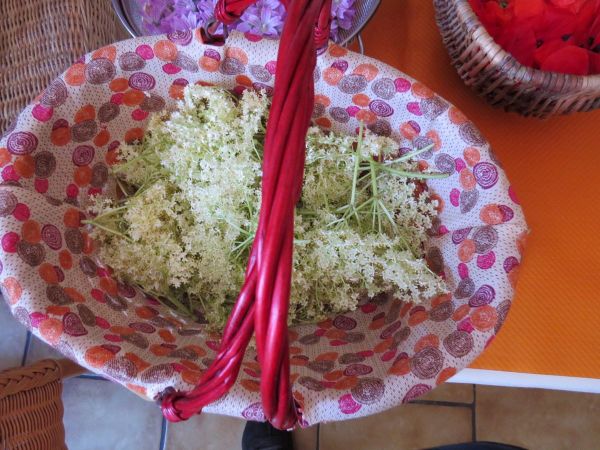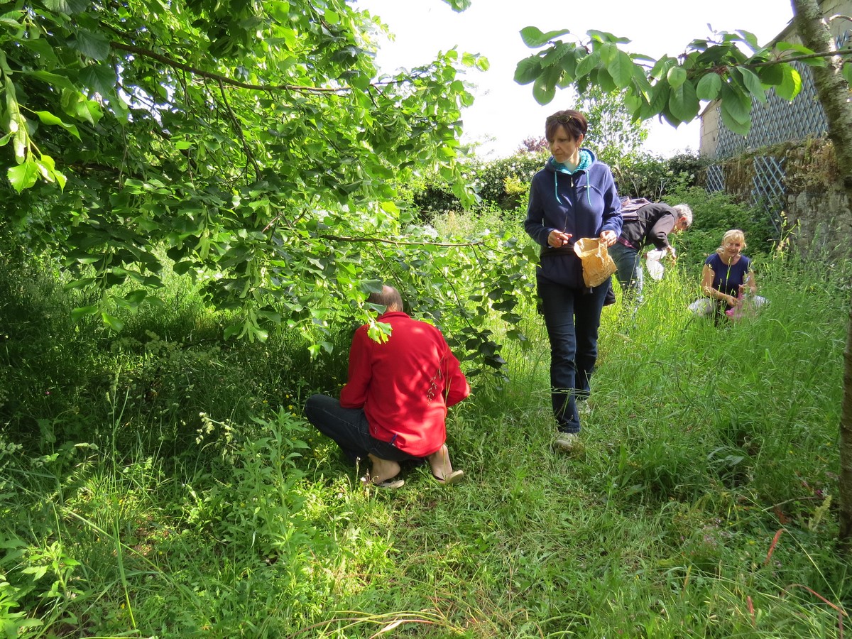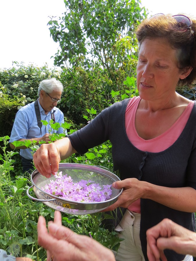 Elle nous a emmené dans le jardin d’une de ses amies, envahi de plantes sauvages, le lieu idéal pour faire notre cueillette de plantes afin de préparer une salade à base de fleurs, du thé solaire aux paquerettes, ainsi que des fleurs de sureau sur le terrain communal en face du jardin.