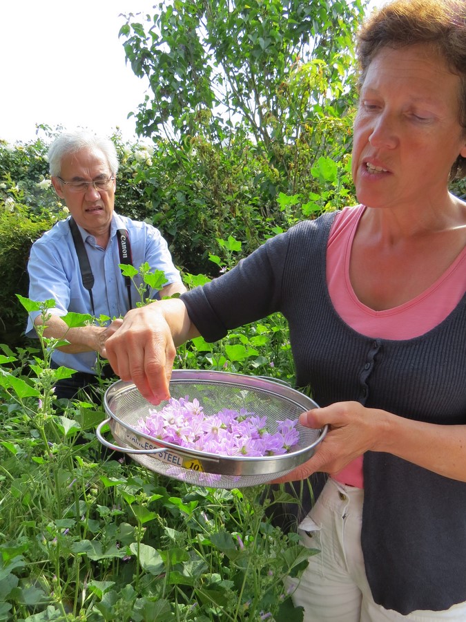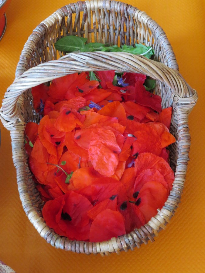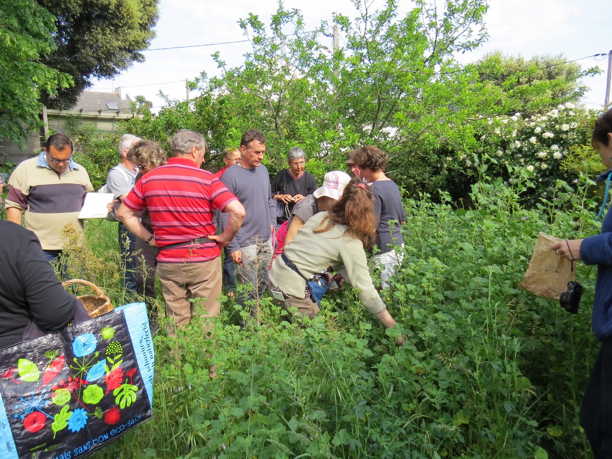 2ème étape Vers 11h nous traversons, à pied, le centre du Croisic pour nous rendre dans un jardin partagé situé sur le terrain d’une ancienne école bien à l’abri des bâtiments et ce jardin possède un puit ! Véronique y cultive une parcelle où herbes sauvages et plantes potagères se partagent l’espace. Nous y ramassons fleurs de coquelicots, de mourons blancs..... Ici, c’est un joyeux mélange coloré et parfumé où chaque plante s’épanouit ( bourraches, roses trémières, pissenlits) ; même les murs sont" habités". Pour cueillir les fleurs de mourons blancs, il a fallu slalomer entre les semis de panais cachés sous les herbes. Véronique est indulgente : ils finiront bien par grandir.