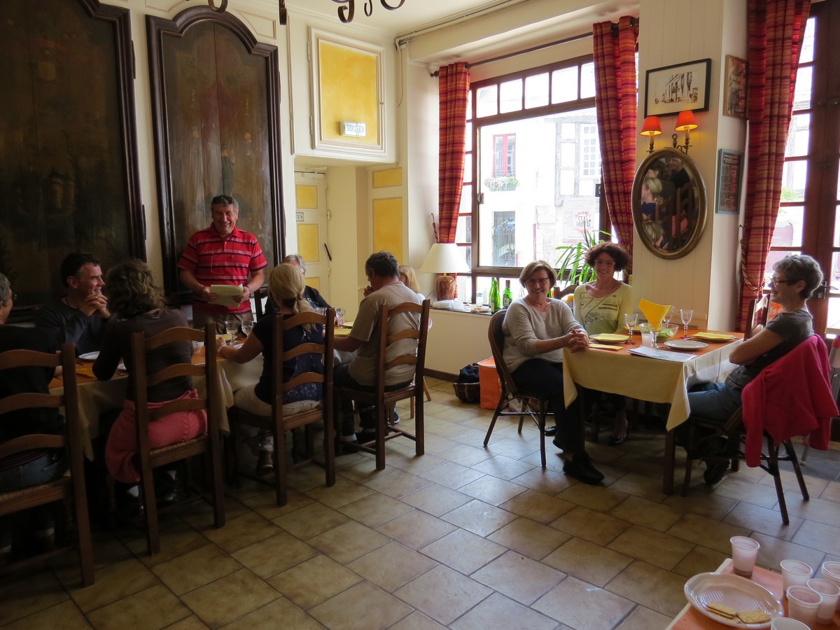 La proximité du clocher de l’église nous rappelle l’heure.... Véronique nous a préparé un déjeuner dans une salle réservée à l’Hôtel "Le fin gourmet" spécialement pour le groupe. Un festival de couleurs, de saveur, de parfums, de texture nous attend. Notre cueillette se retrouve dans de nombreux plats qui nous sont proposés. Plus un bruit dans la salle, on déguste, on découvre les merveilles "sauvages" de la nature.