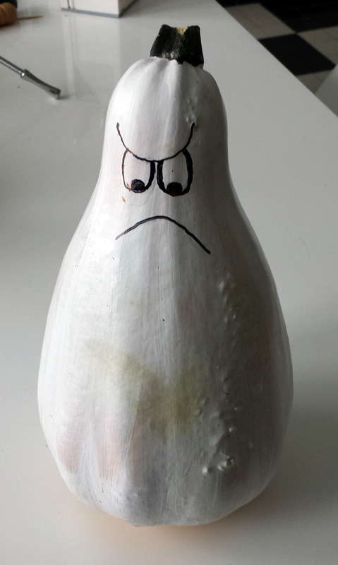 Pour le fantôme, juste de la peinture blanche et du feutre, très rapide et très facile pour les plus petits ou les faignants :-)