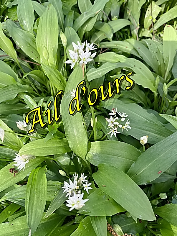 Puis nous sommes arrivés sur le site de l’ail des ours, un tapis vert magnifique surmonté de ses petites fleurs blanches qui dansaient avec la légère brise. La cueillette à pu commencer. Notre guide nous donna quelques recettes, et nous sommes rentrés pour les appliquer.
