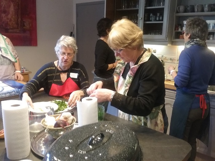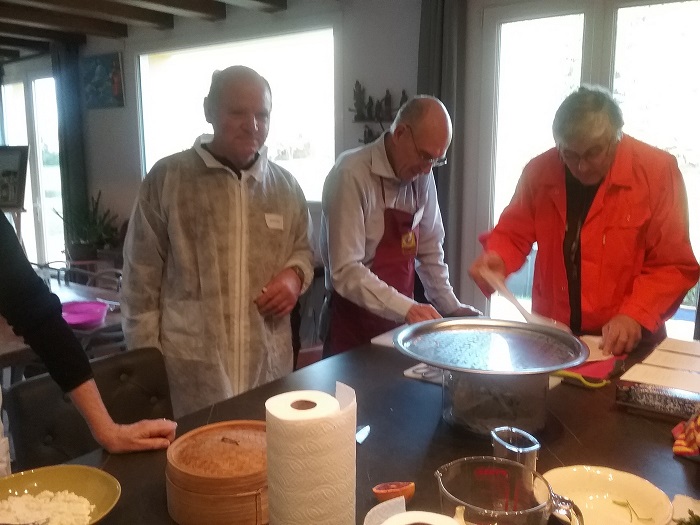 Ce fut l’occasion aussi bien d’échanges culinaires que culturels dans une ambiance très conviviale grâce au bon accueil et aux propositions de Laurence LECONTE ainsi qu’aux bons soins de Geneviève BARBEREAU responsable Convivialité en présence de Nicole KOBAK responsable de l’atelier, Vice-Présidente de notre Association.