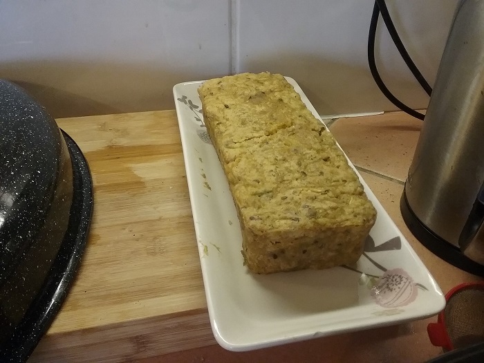 215g de lentilles vertes cuites, 85g de noix, 1 gros oignon, de l’huile d’olive, 2 cuillers à soupe de tamari (ou sauce soja), 2 cuillers à soupe de jus de citron, sel, poivre, paprika, une pincée de baies roses.