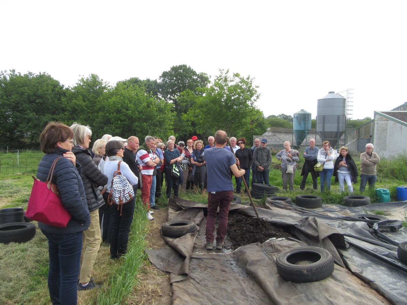 4 - Rendez-vous à la ferme Lombilicole le Lanouée et découverte du compostage réalisé avec des vers de terre. Satisfaction de la présentation sous un temps propice à cette sortie.