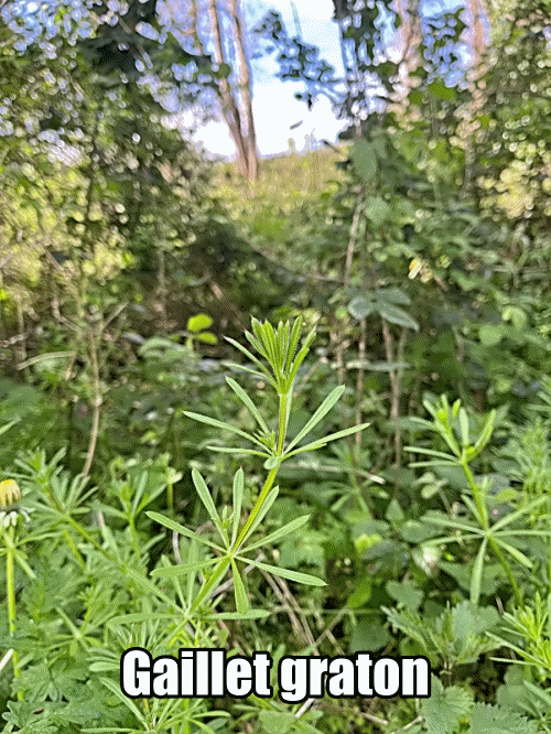 . Les comestibles : Le lamier des jardins, le gaillet gratteron ( souvent appelé « gay graton », l’oseille sauvage, le pissenlit pour agrémenter nos salades.
