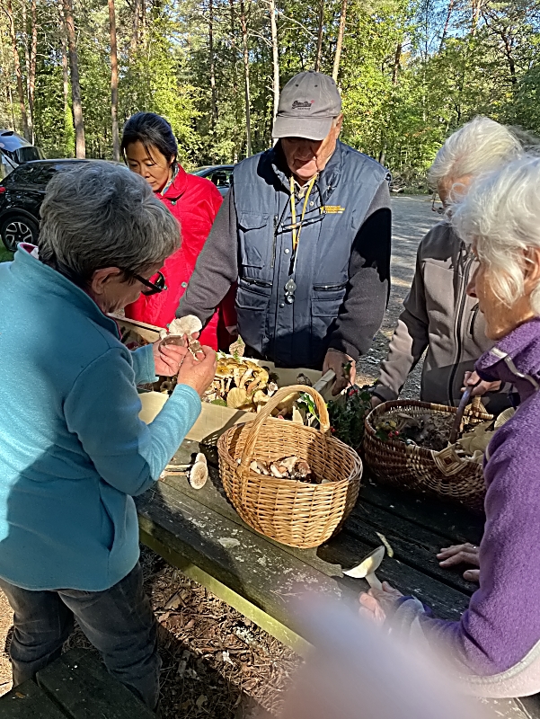 En fin de matinée nous nous sommes tous réunis pour une inspection très instructive et explicative par la présidente Mme Annick Tessier sur les différents champignons récoltés.