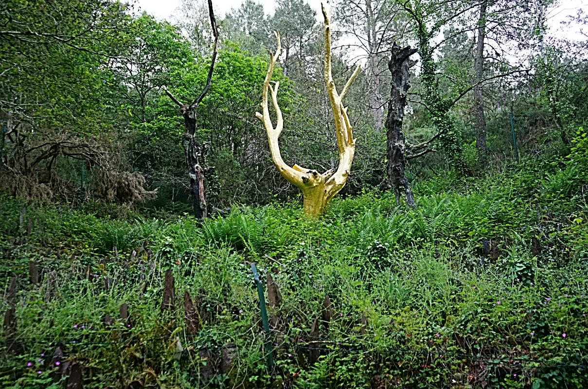 Puis nous sommes partis pour le Val sans retour ou Armel mit en garde toutes les personnes infidèles car les fées du lac les garderaient avec elles. Selon la légende, la fée Morgane, trompée par le chevalier Guyomard avec une femme de petite noblesse, transforma les faux amants en deux rochers et sa vengeance ne s’arrêta pas là. Grace à un puisant sortilège, elle enferma dans une prison d’air tous les chevaliers infidèles qui franchissent le Val périlleux. Après avoir arpenté quelques centaines de mètres, nous apercevons l’arbre d’or. En écoutant le vent dans les branches d’arbres, nous les entendons murmurer. Heureusement... tous les jardiniers sont revenus.