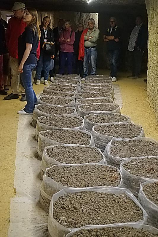 Notre première escale nous a amenés à une culture de champignons dans une cave troglodyte. Une guide a commencé par nous expliquer comment elles ont été réalisées.